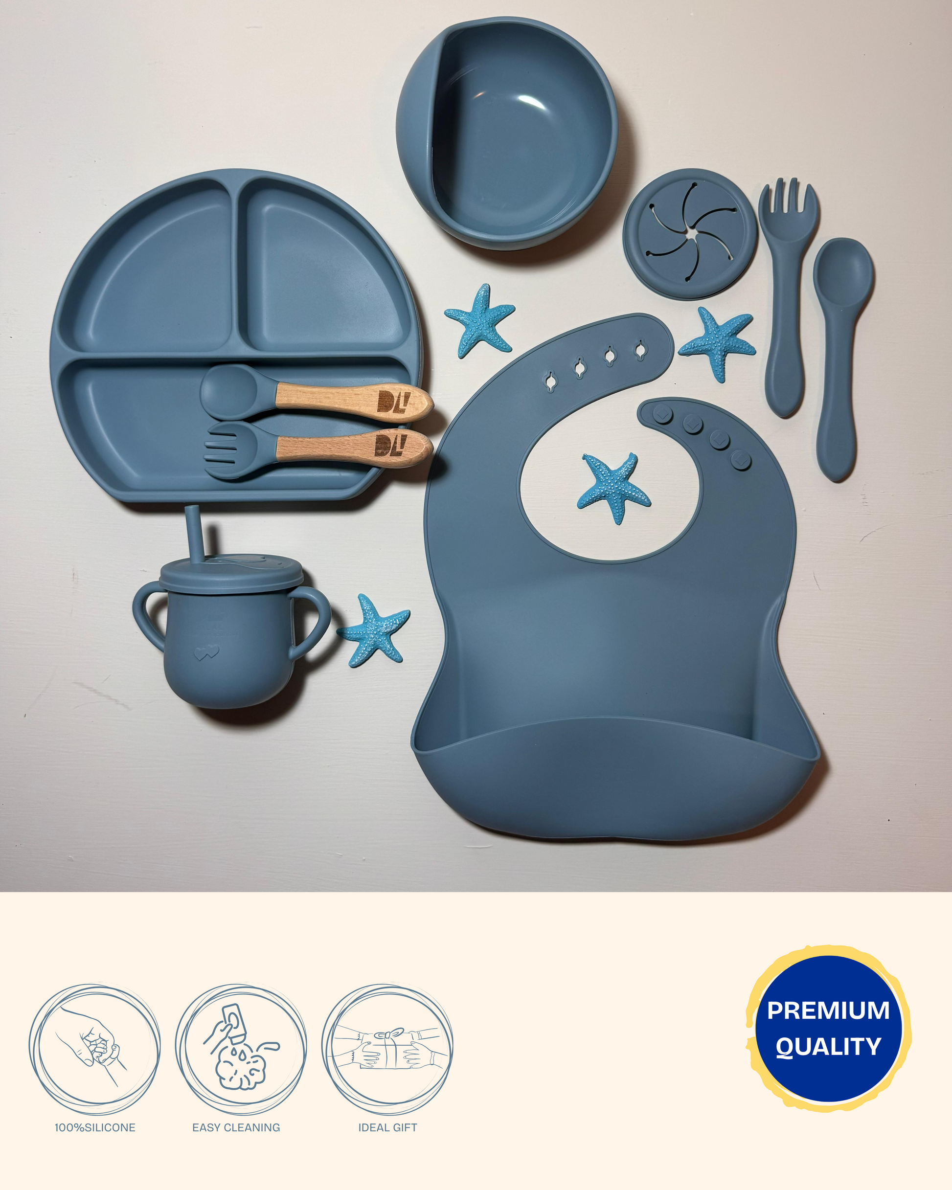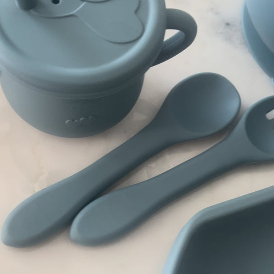 Our Kahl set is inspired by still skies and quiet mornings — a soft, powdery blue that brings a sense of peace to every meal. Thoughtfully crafted as a 9-piece silicone set, it’s designed to grow with your baby while elevating the everyday.
