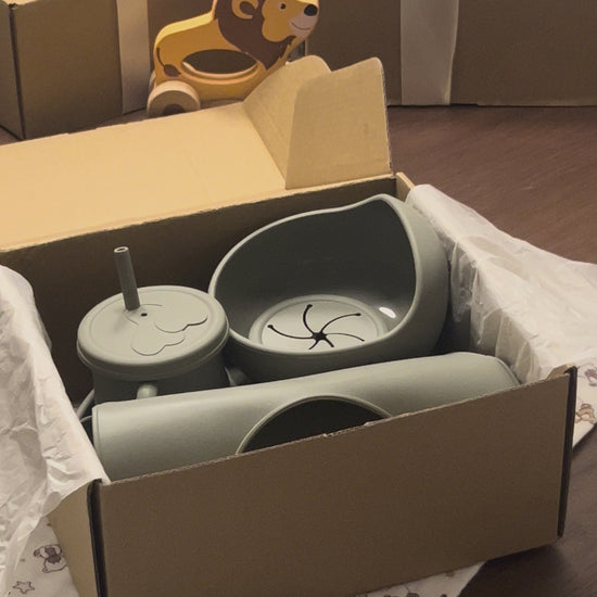 Our Olive set brings a rich, muted green tone that feels both modern and rooted. Designed for families who appreciate beauty in simplicity, this 9-piece silicone set blends practicality with elevated design — making mealtime feel calm, intentional, and elegant.